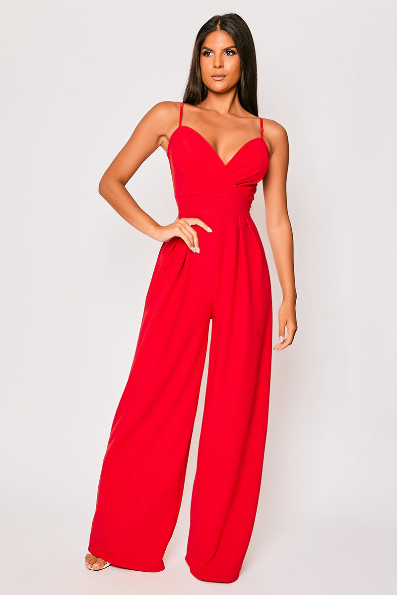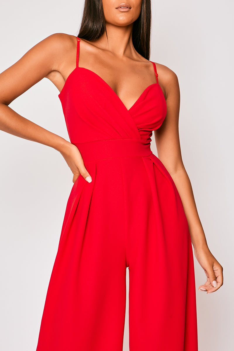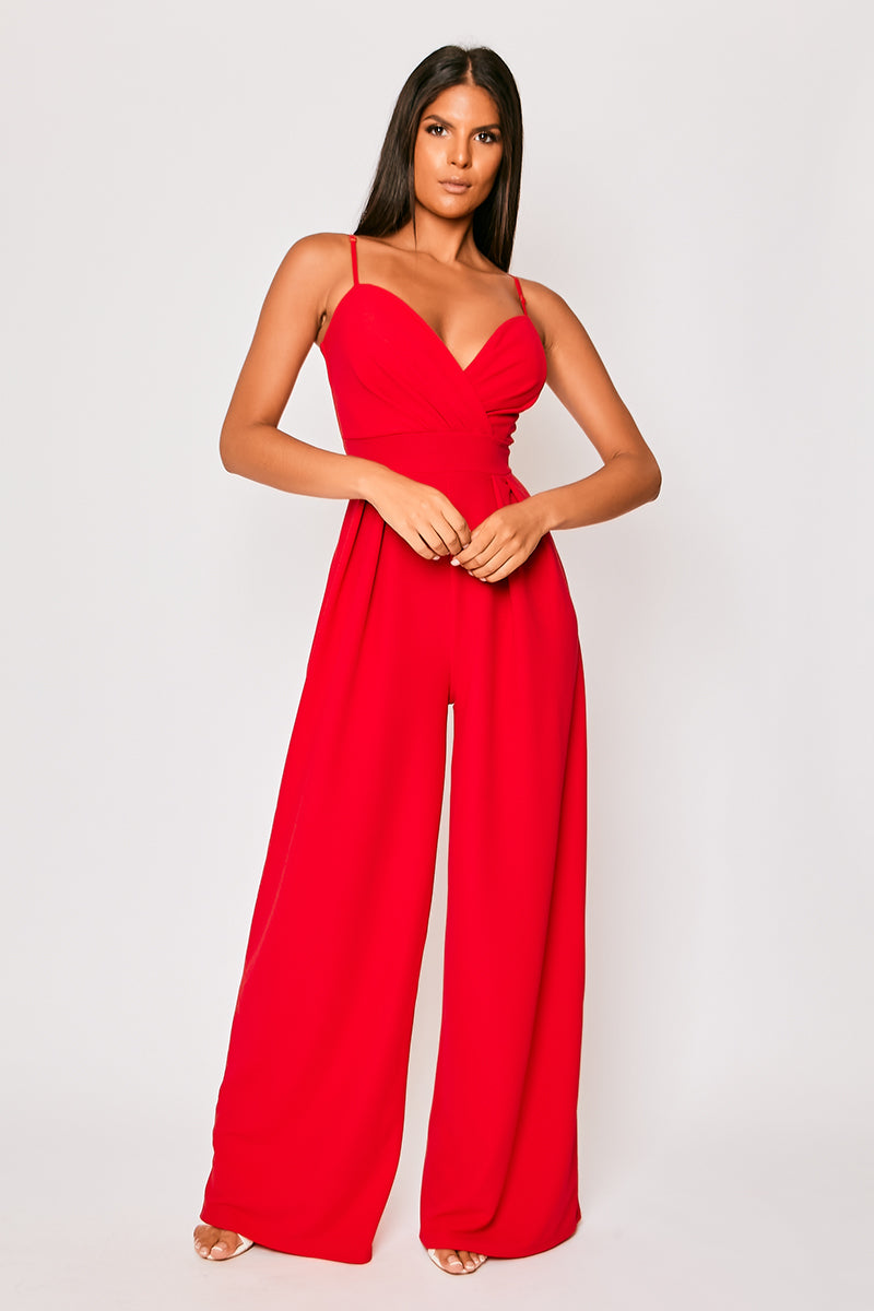Call off the search! The Apricot tailored red jumpsuit is wedding guest worthy. This jumpsuit will show off your sophisticated side doll. Featuring a classic red hue with a feminine sweetheart neckline and wide leg combination. Style with our Rafal Blazer and strappy heels and occasion ready!