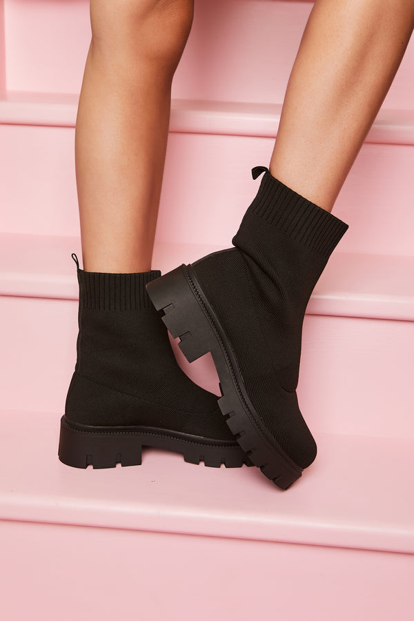 Kenley - Black Fur Trim Faux Suede Ankle Boots